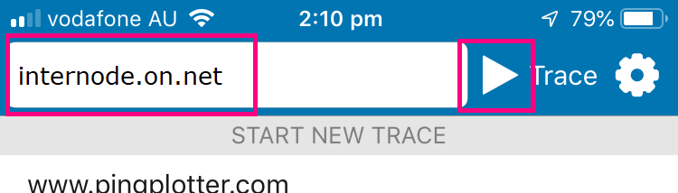 - Once the app has installed, open it and type internode.on.net or another address you wish to ping/traceroute into the address bar at the top of the screen, then hit the Start button to begin the test.